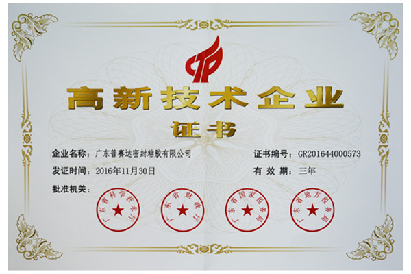 廣東普賽達密封粘膠有限公司榜上有名通過2016年國家高新技術(shù)企業(yè)復(fù)審。