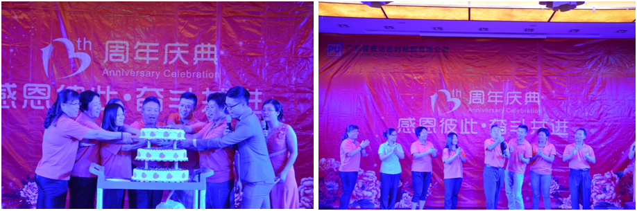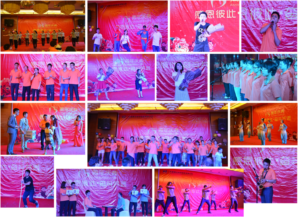2樓晚宴廳,現(xiàn)場布置、演員化妝、主持彩排、節(jié)目復(fù)習(xí)如火如荼地進(jìn)行。終于,16點30分,帥哥美女齊聚一堂,現(xiàn)場音樂響起,燈光閃爍,普賽達(dá)13周年慶晚會準(zhǔn)時燃起。精彩的視頻短片,記錄了2015的輝煌,任總致辭,表達(dá)了對家人,員工的感謝。歡快的生日歌縈繞耳旁,任總及各部門長一起切蛋糕,開香檳,舉杯慶祝普賽達(dá)13周歲生日。